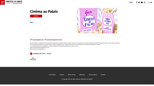 LE PARTENARIAT ENTRE NUIT BLANCHE, NOUVEAU PALAIS ET PRODUCTIONS SPECTRUM SE POURSUIT EN 2021, POUR UN 11E CINÉMA AU PALAIS!